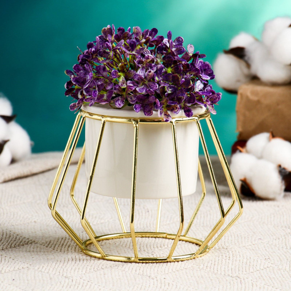 Кашпо, белый, золотой, 0.25 л, 1 шт