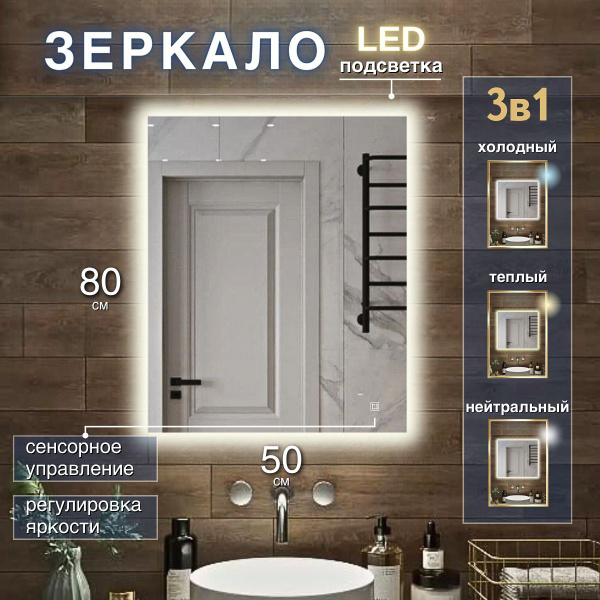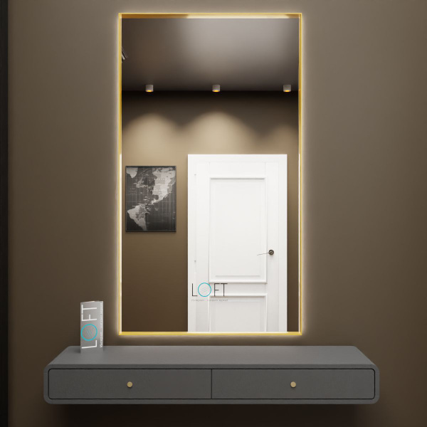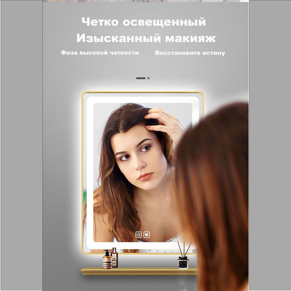 Зеркало-шкаф, 50х10х70 см, 50X70cm Белый свет + одно касание + золотая