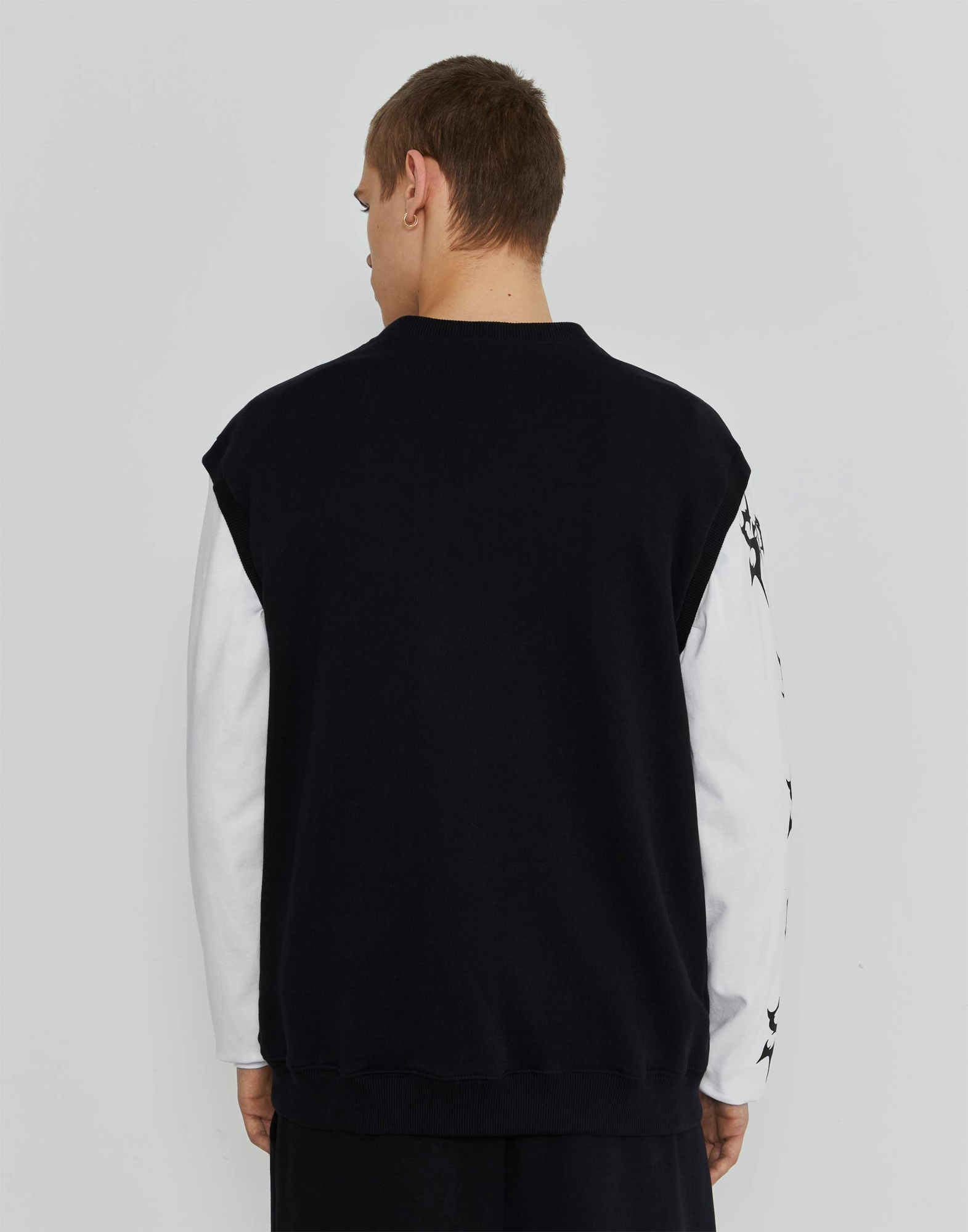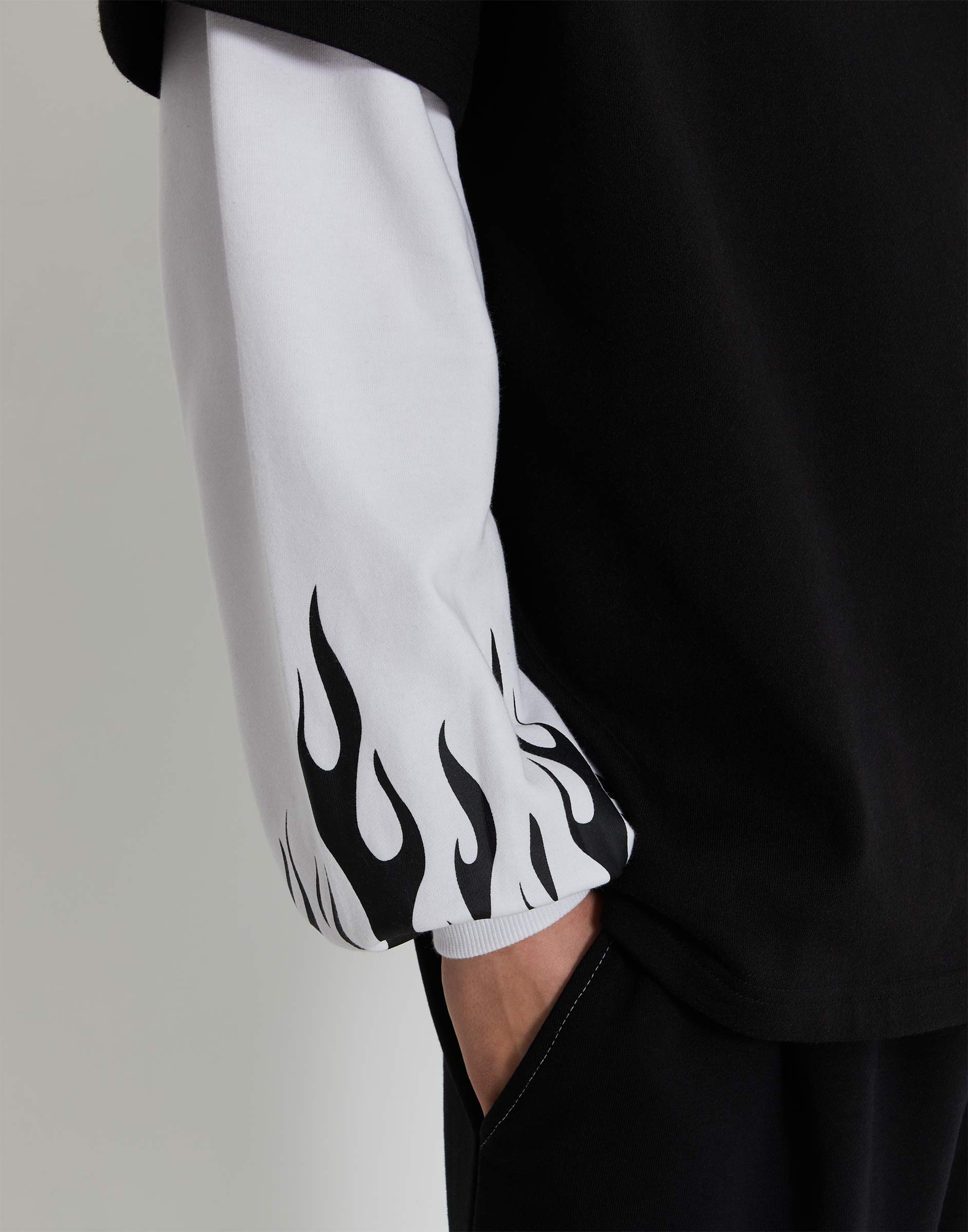 Чёрный свитшот oversize с двойным рукавом и принтом для мальчика