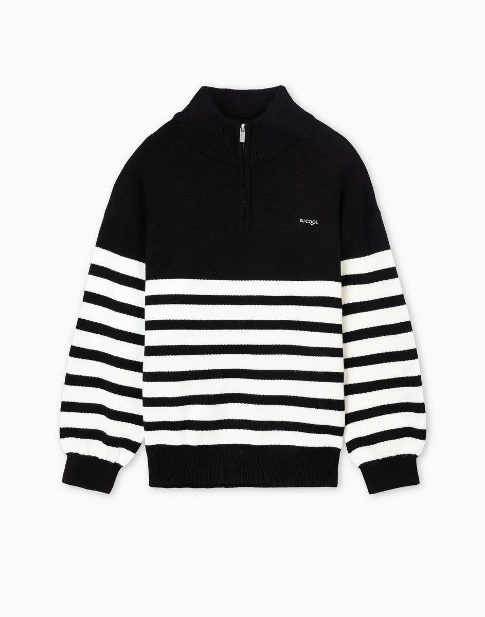 Чёрный свитшот в полоску с вышивкой BSW002339-1 купить по цене от 699