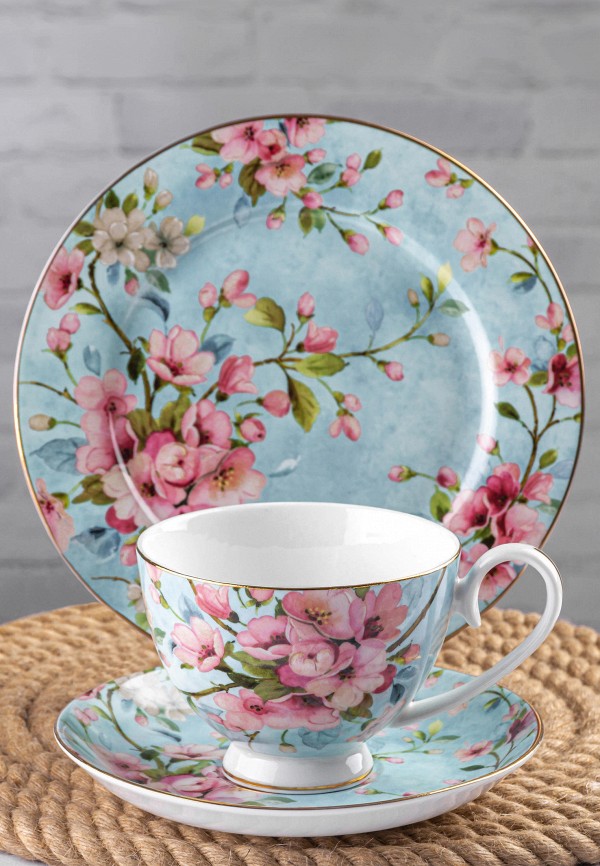 Набор тарелок Elan Gallery 19х19х2 см Яблоневый цвет, цвет: голубой
